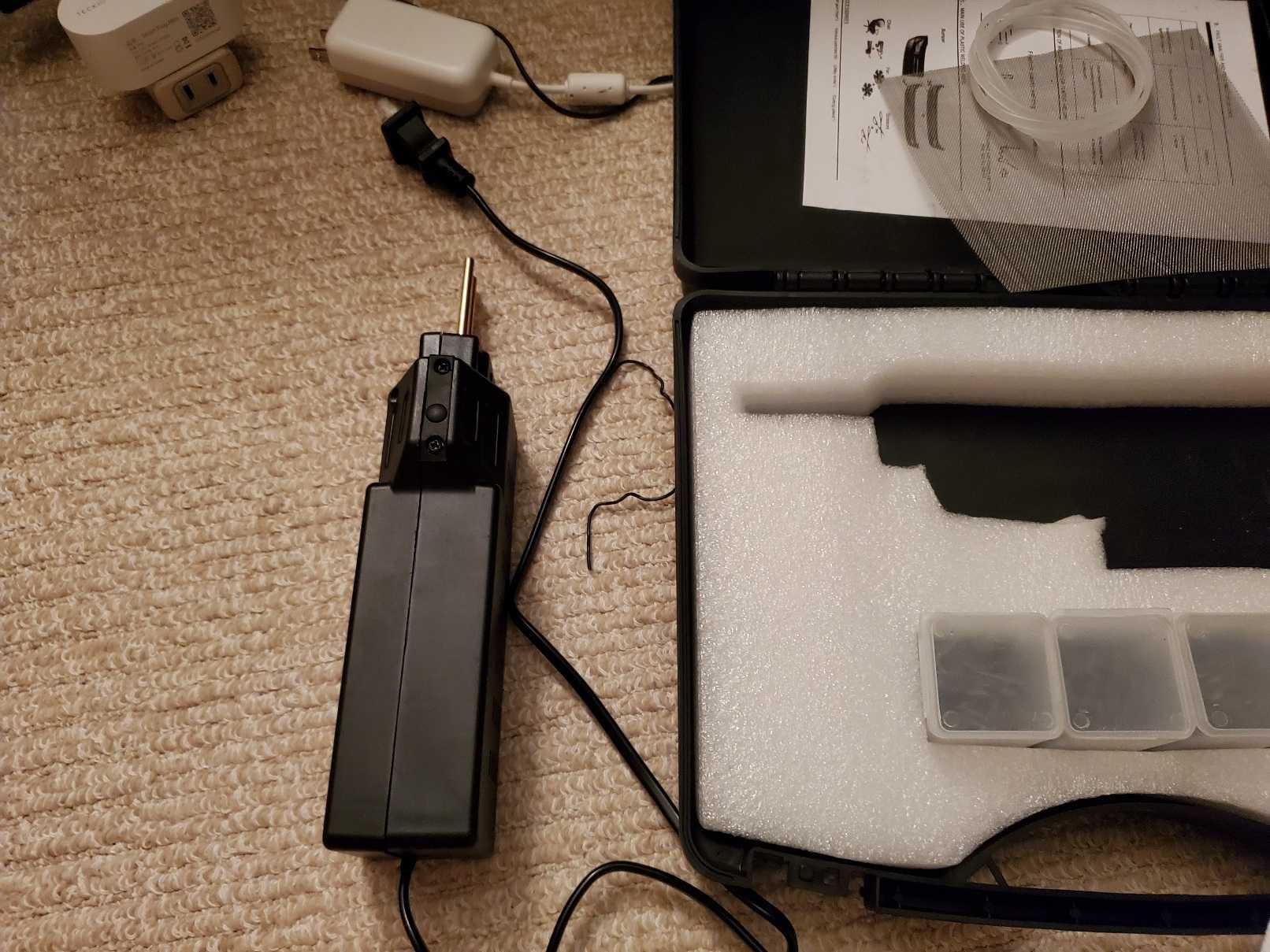 プラスチックに熱したピンを当てて、溶かして補修する工具です。
