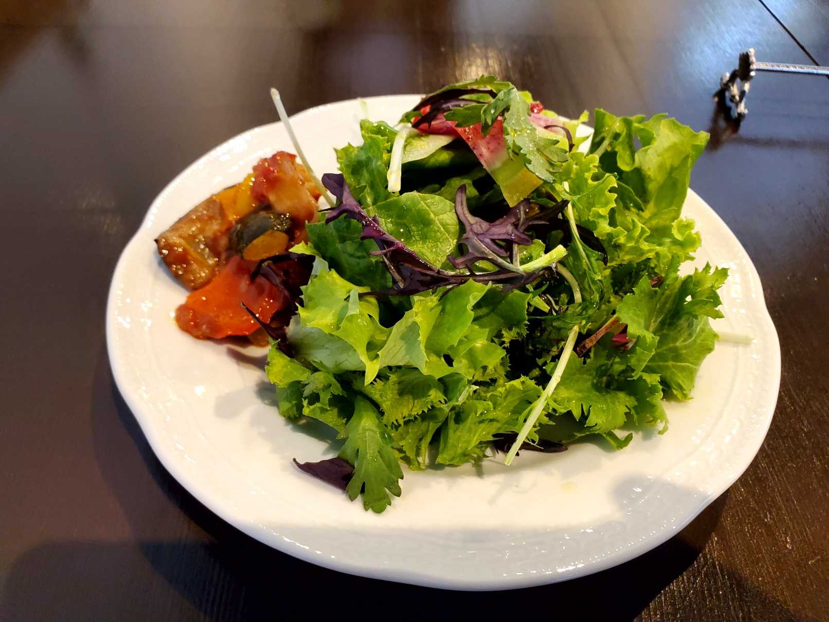 朝飯をきちんと食べたので、結構なボリュームのサラダ(美味しかった~)とフォカッチャで、実はお腹が満たされてました(笑)。