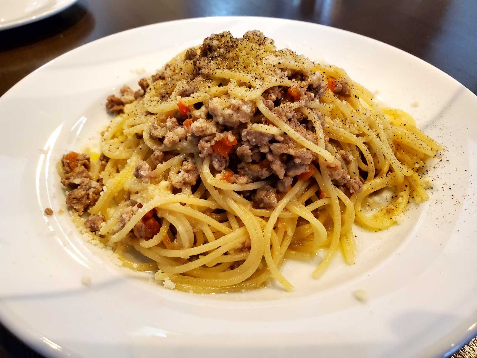 ランチは、パスタ2種類から選択。白ワインのミートソースと