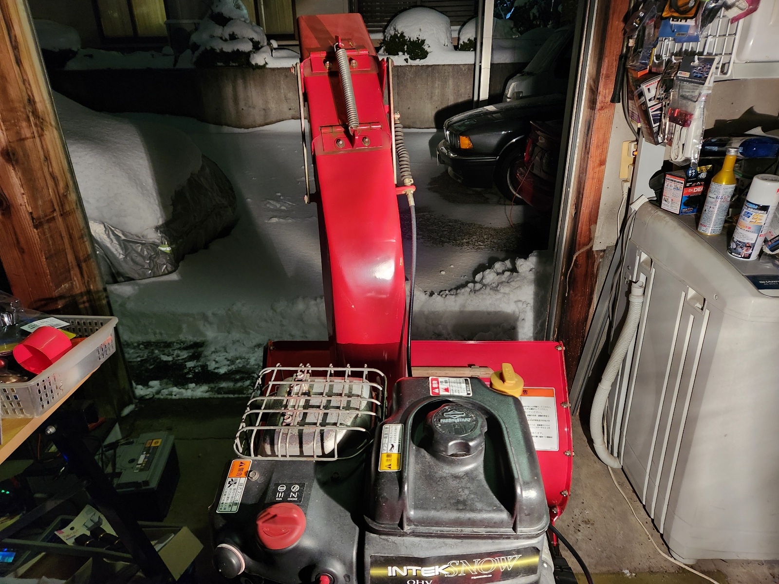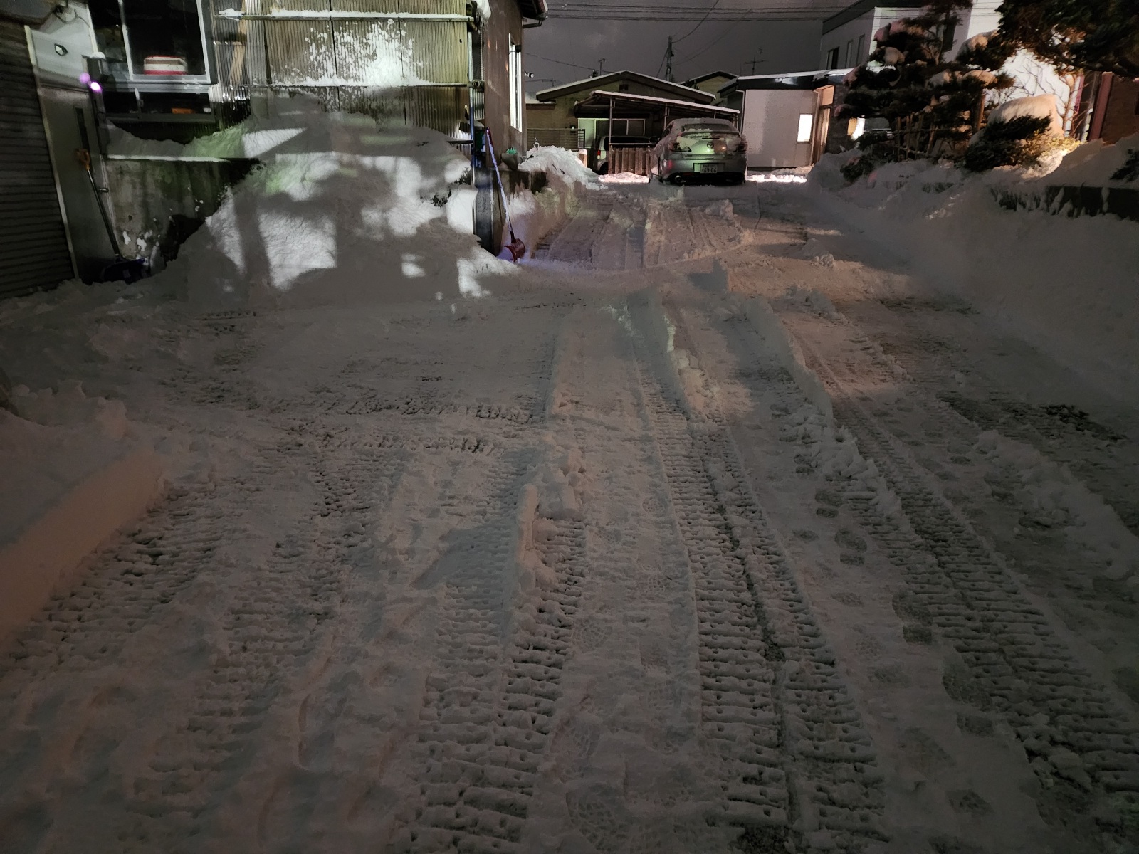 ギリギリ車を入れられる所まで雪寄せをしてくれてました。