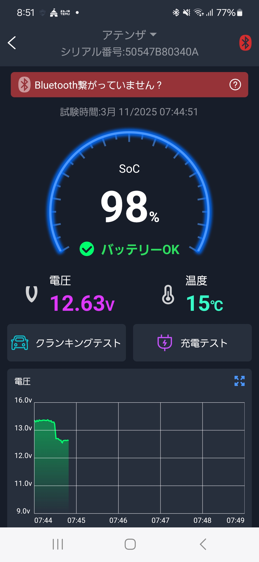朝の時点では、Socは98% バッテリーOKとなっているが、、(苦笑)
