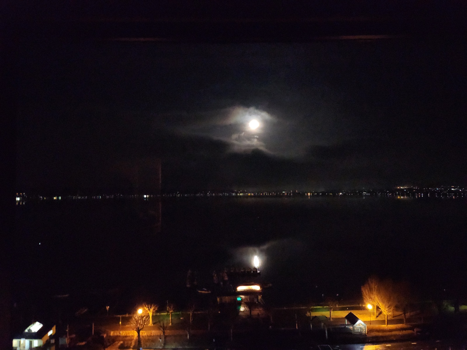 夜中? ふと目を覚ますと真っ正面にお月様。