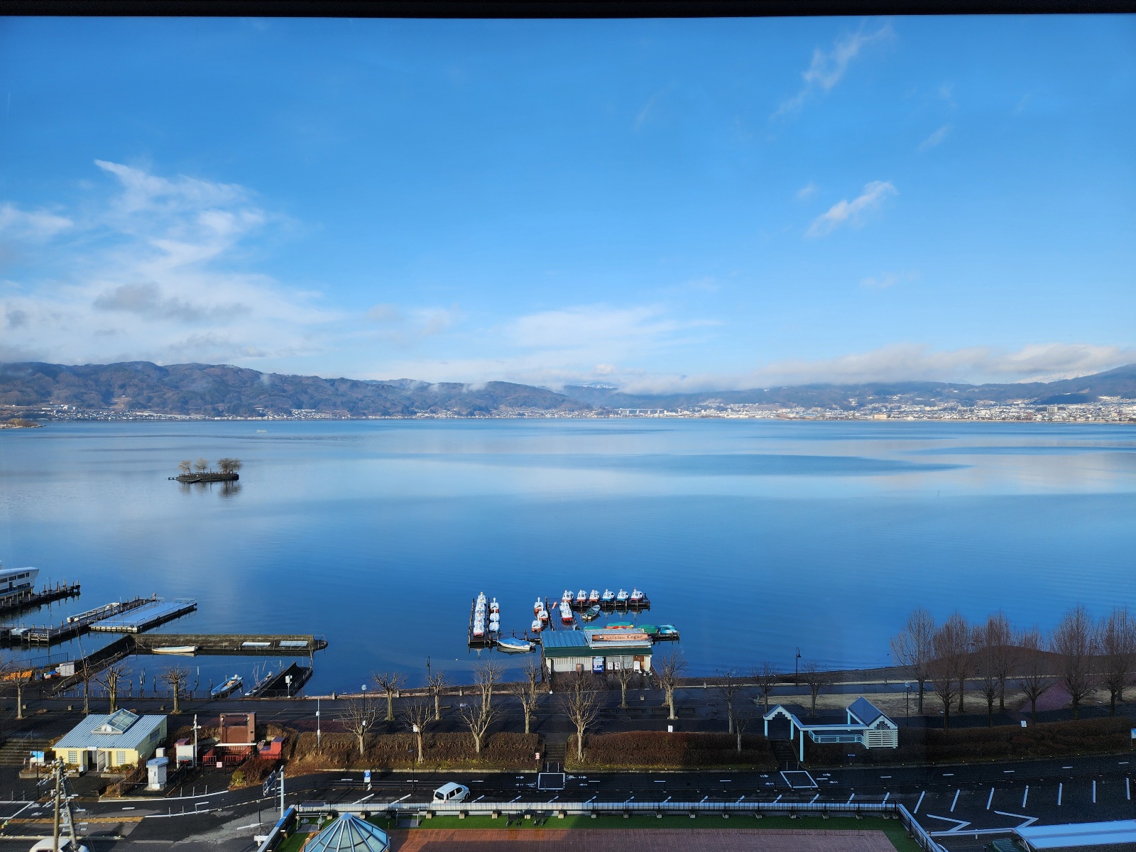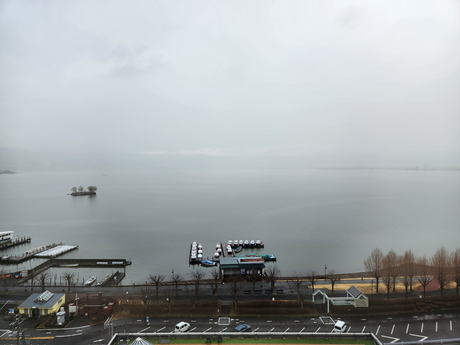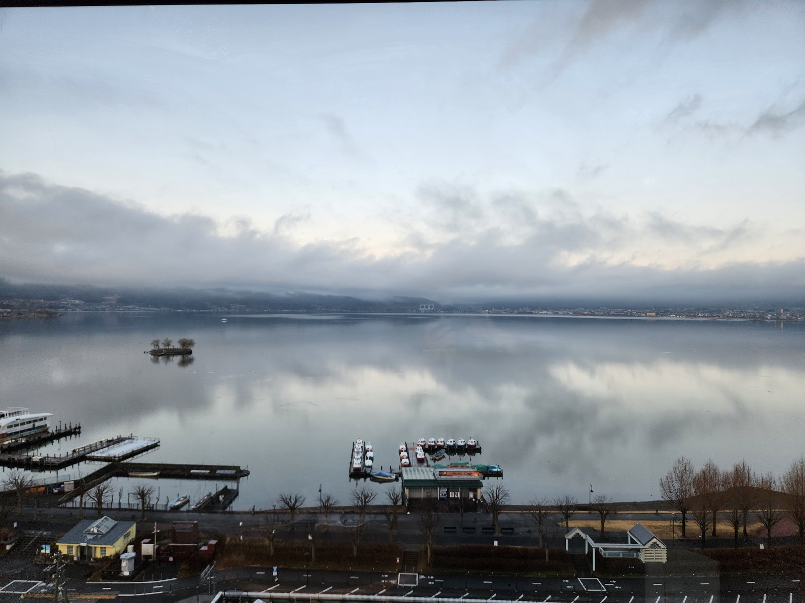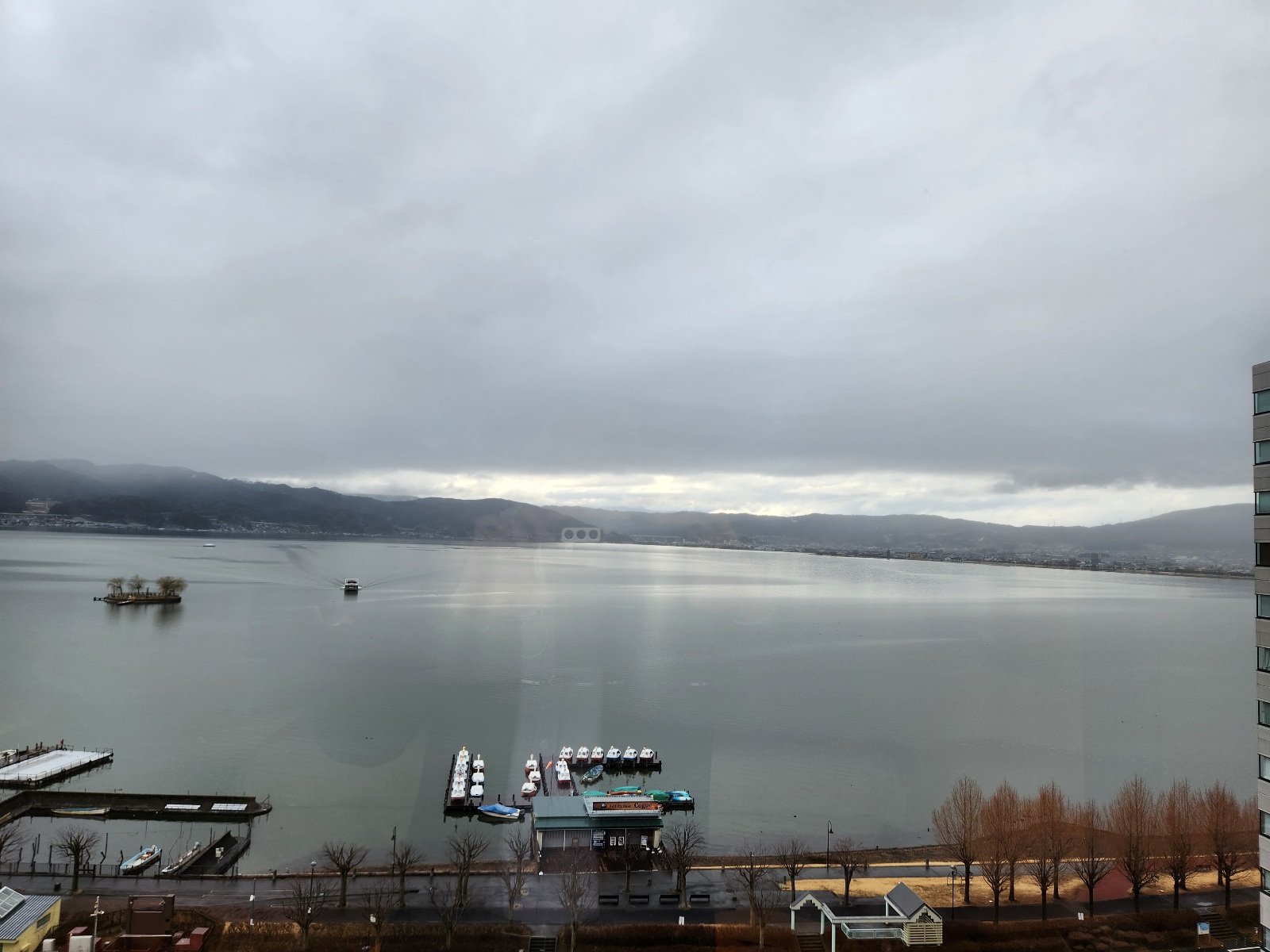 部屋に入ったタイミングがこれ、折角の諏訪湖がサッパリです。