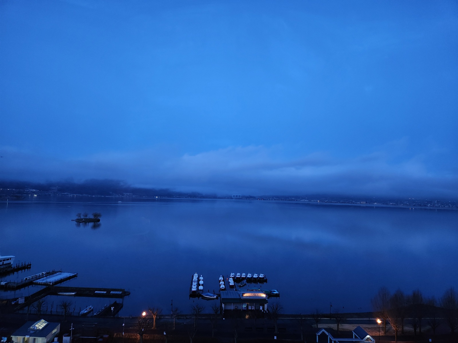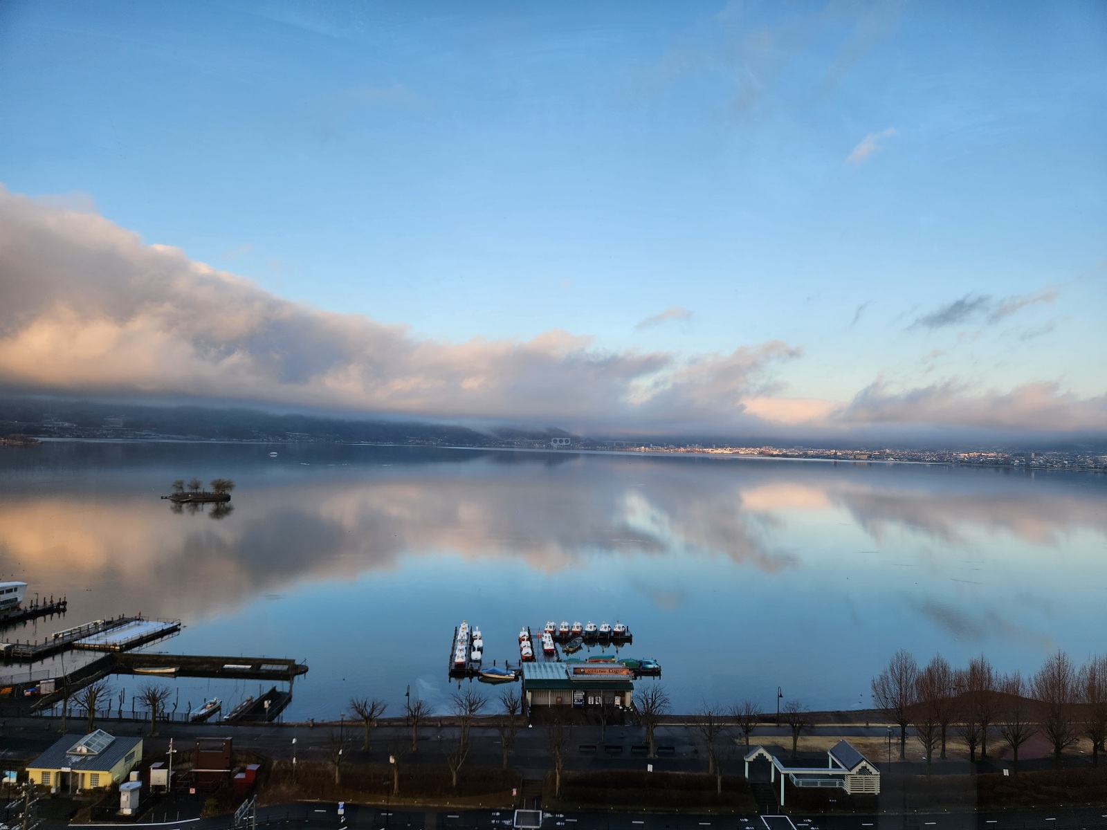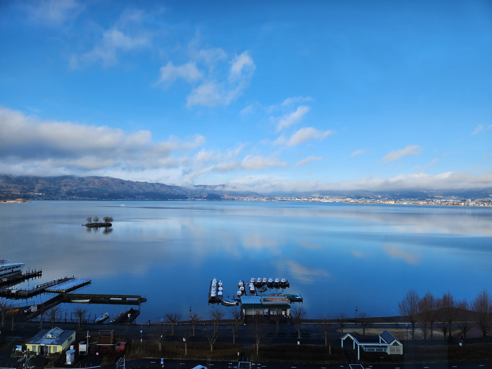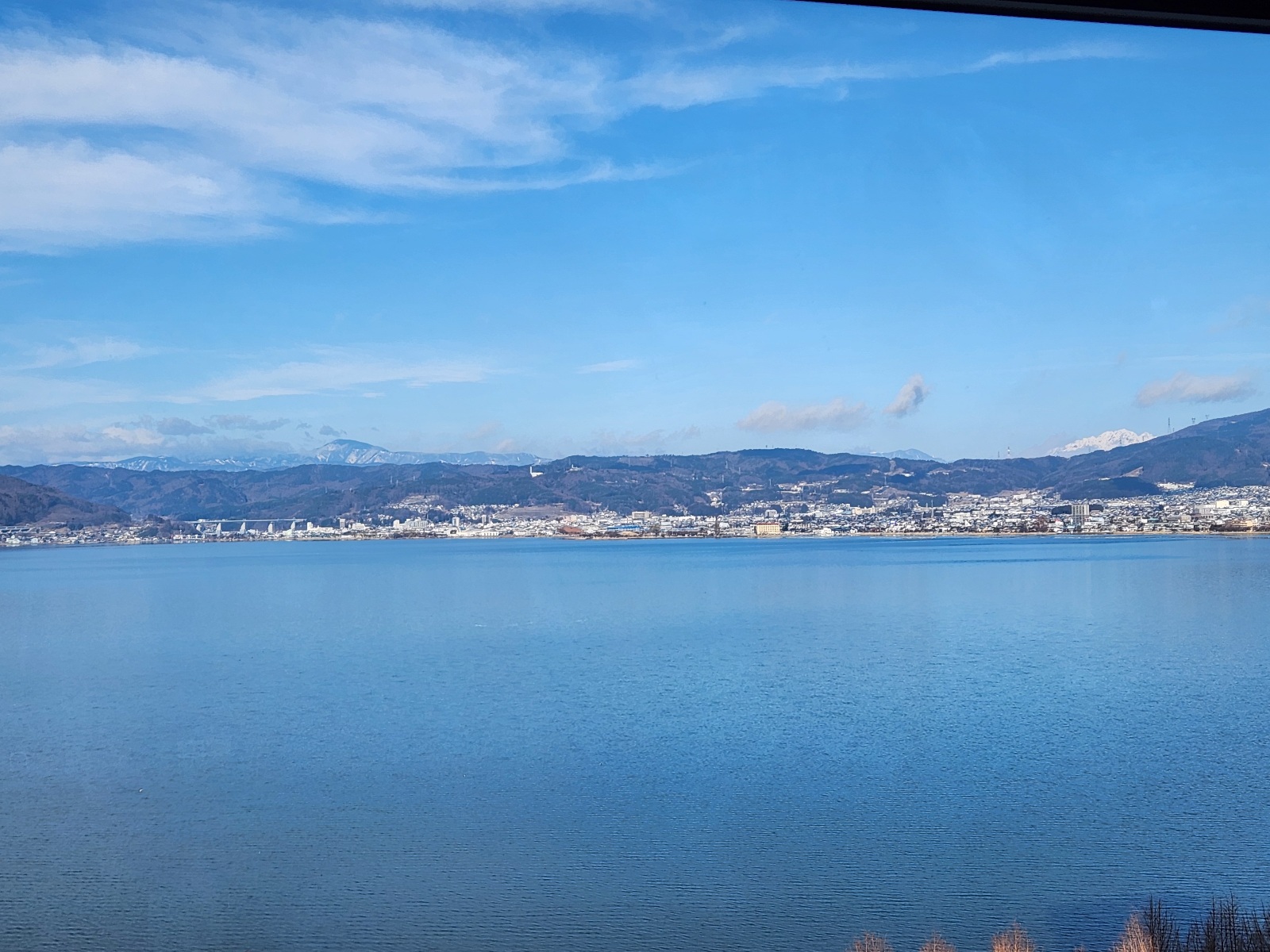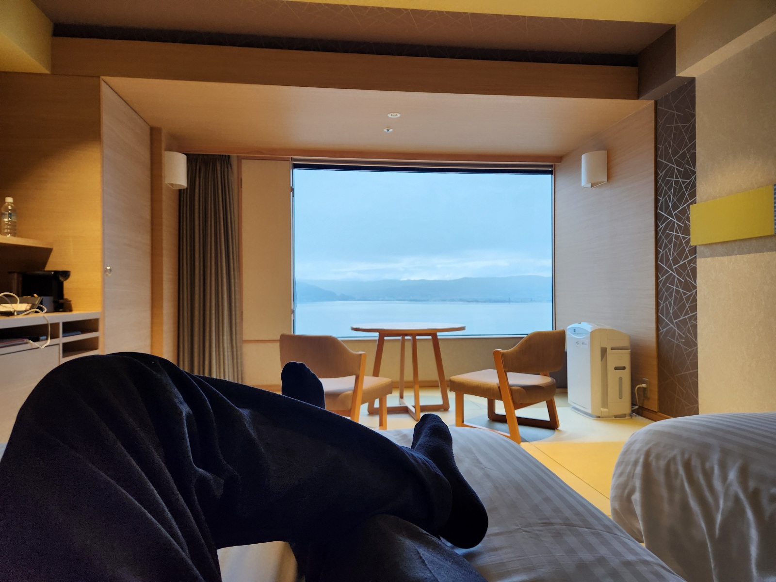 部屋に入ったタイミングがこれ、折角の諏訪湖がサッパリです。