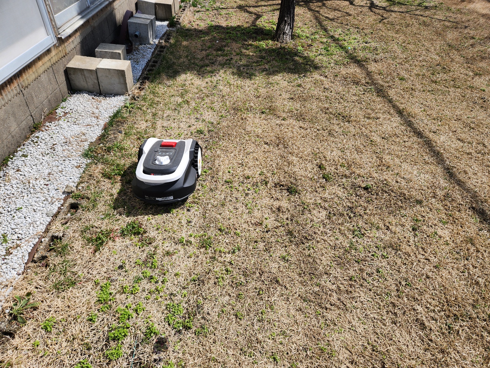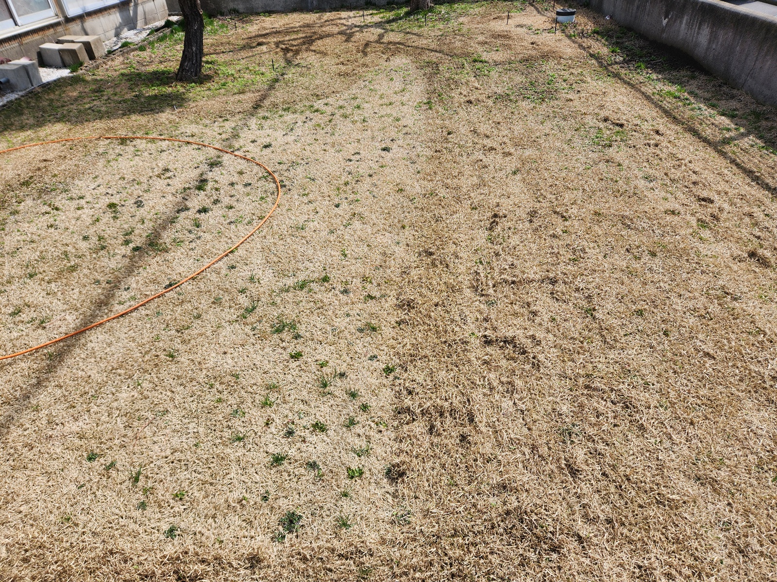 芝生はまだ起きてきませんが、雑草は元気ですね~~。