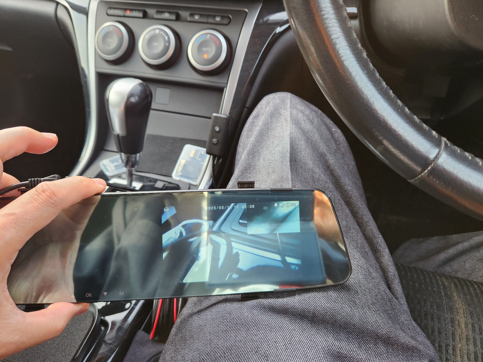 現在のカメラは、前方と室内と後方の3カメラのモデル。しかし、N田のことですからリアのカメラはただ置いただけ…(苦笑)。