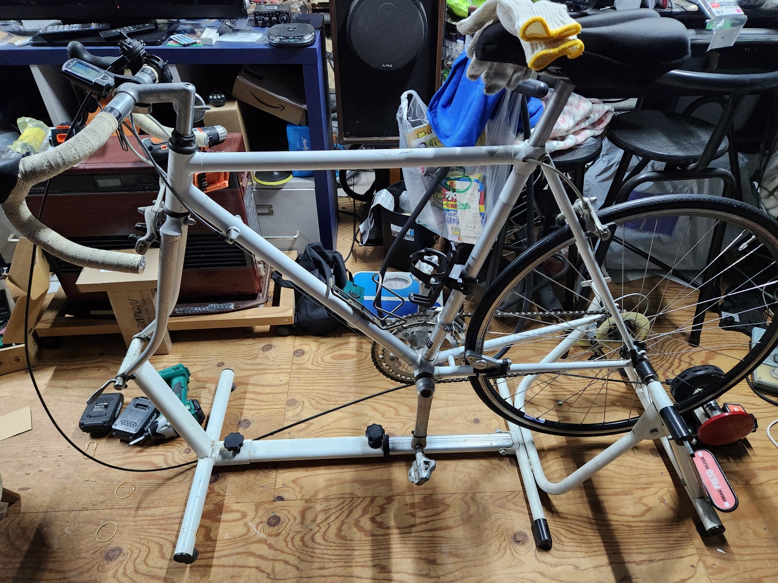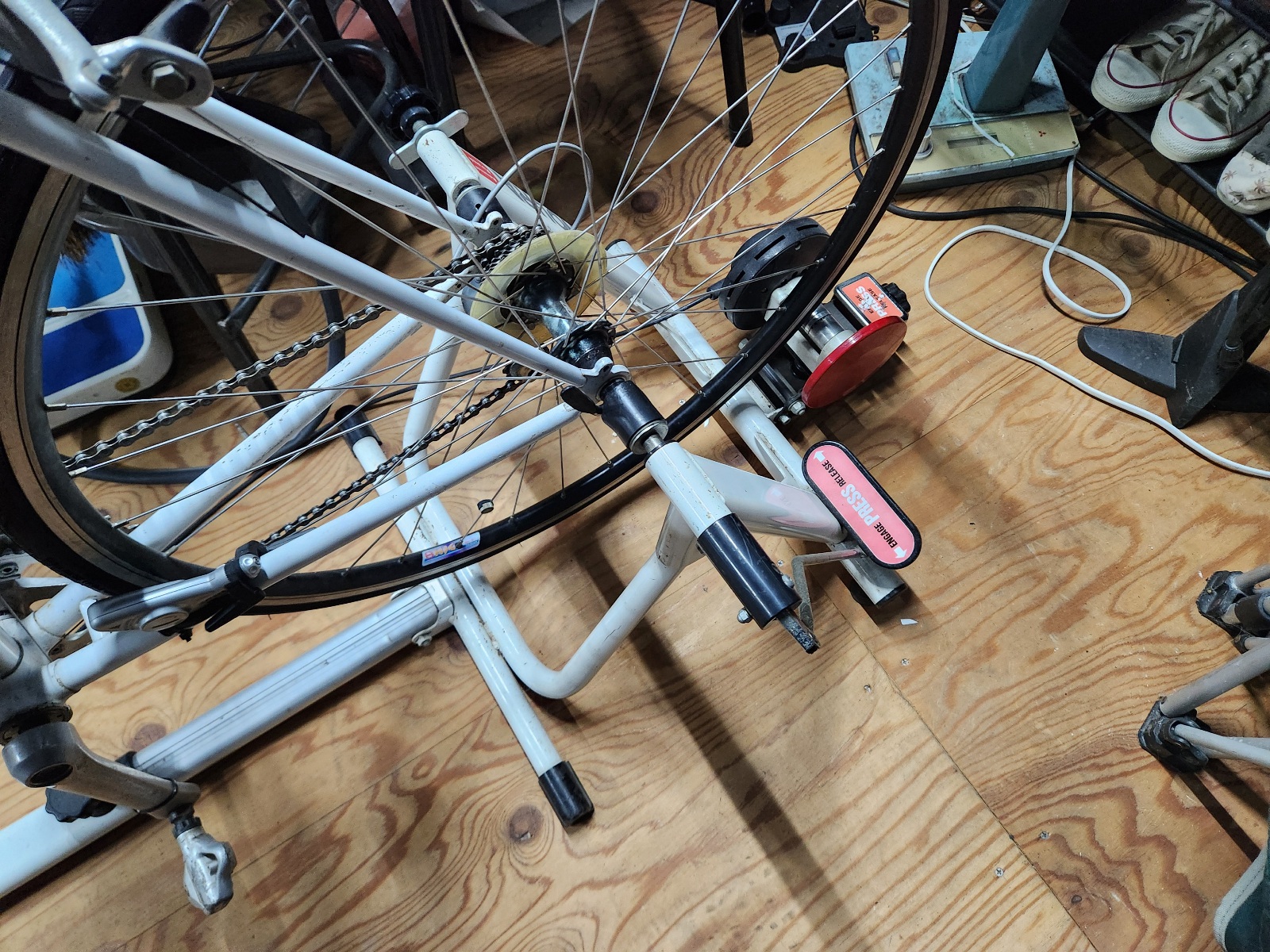 ポジションがキツいので、MTBをセットしたらホイール径が小さくてローラーが当たりませんでした…(苦笑)