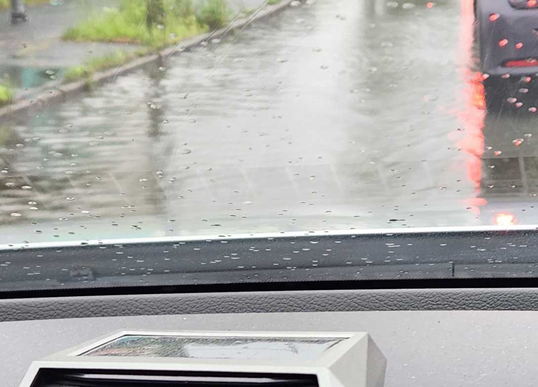 片側一車線水溜まり…。ここがこうなるの、今まで経験したことありません(苦笑)。