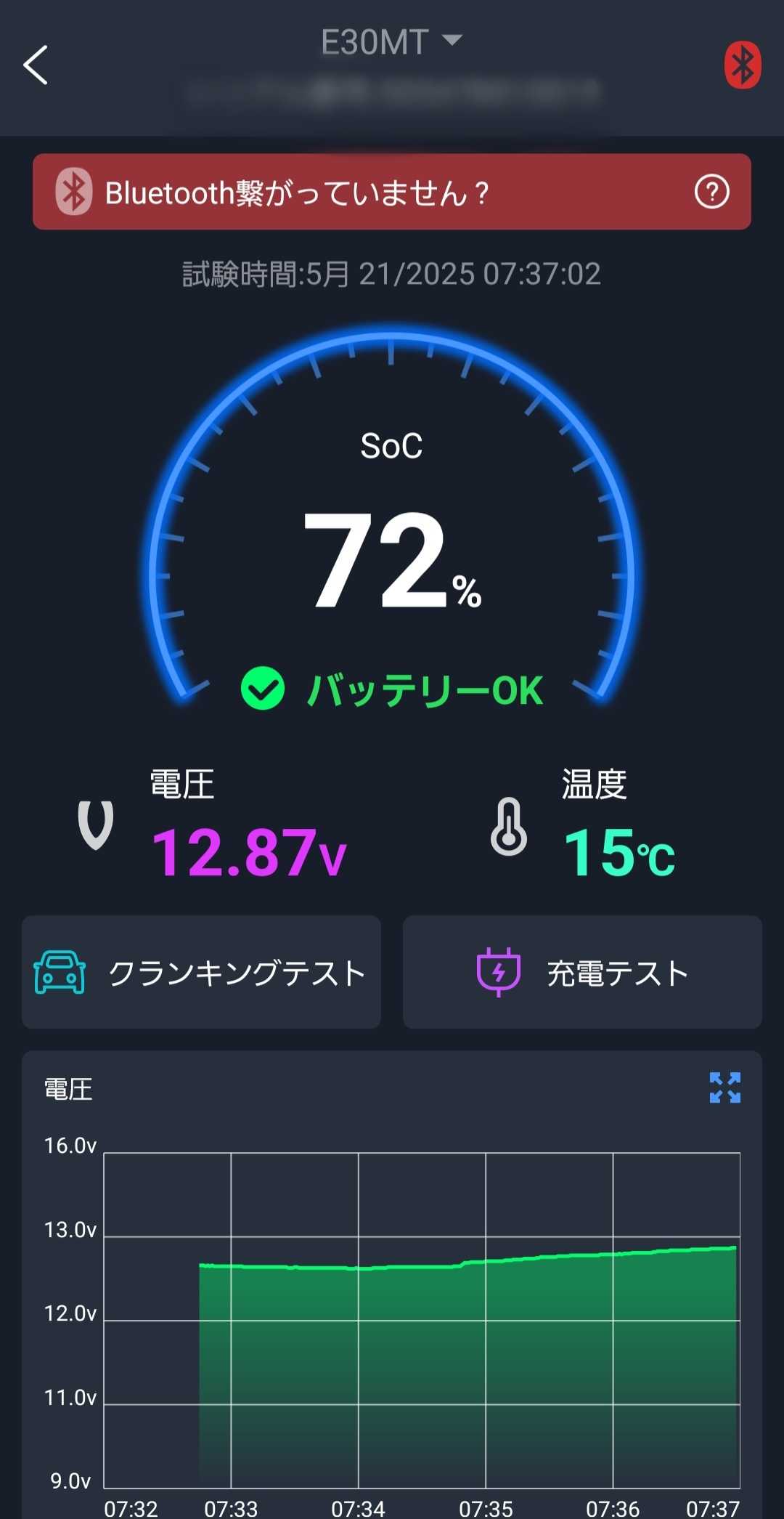 おや? SoC72%…? もしかして充電器を繋いでない?(苦笑)