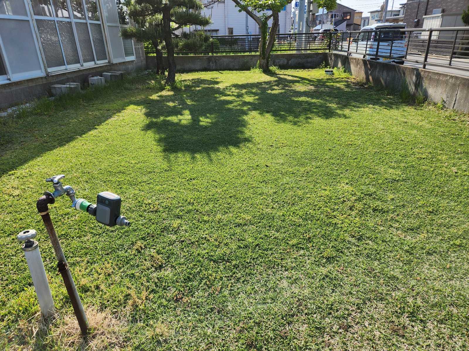 今日は出勤まで少し時間があったので、ちょっとだけ芝生には大丈夫な除草剤を雑草にかけてきました~。