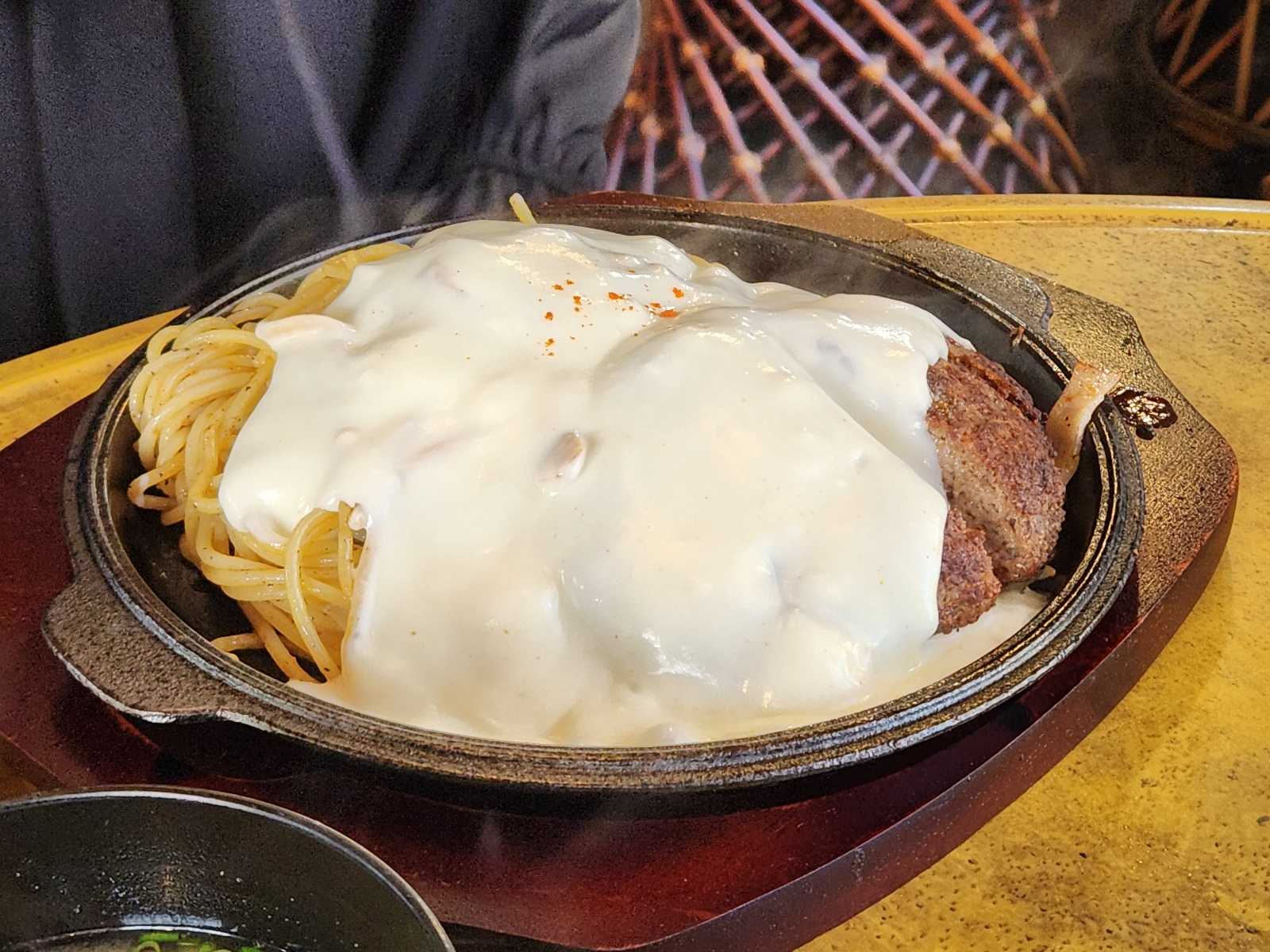 ホワイトソースののったハンバーグスパゲッティー(笑)