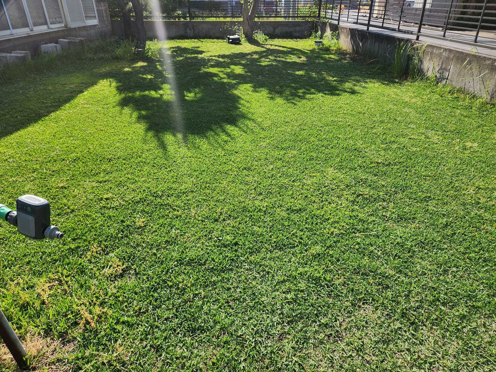 芝生、3日ぶりで見ると、雑草が生えたりして整ってませんね。