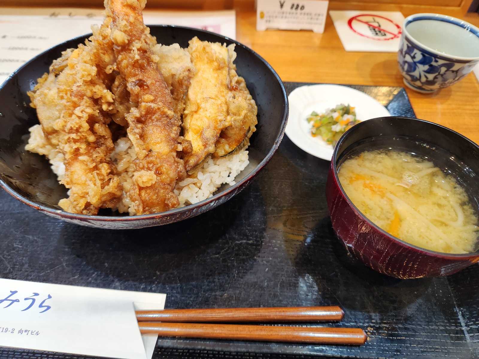 天丼1200円。 うっ、また値段が上がってる~。(昨今のご時世では致し方がないか(苦笑))