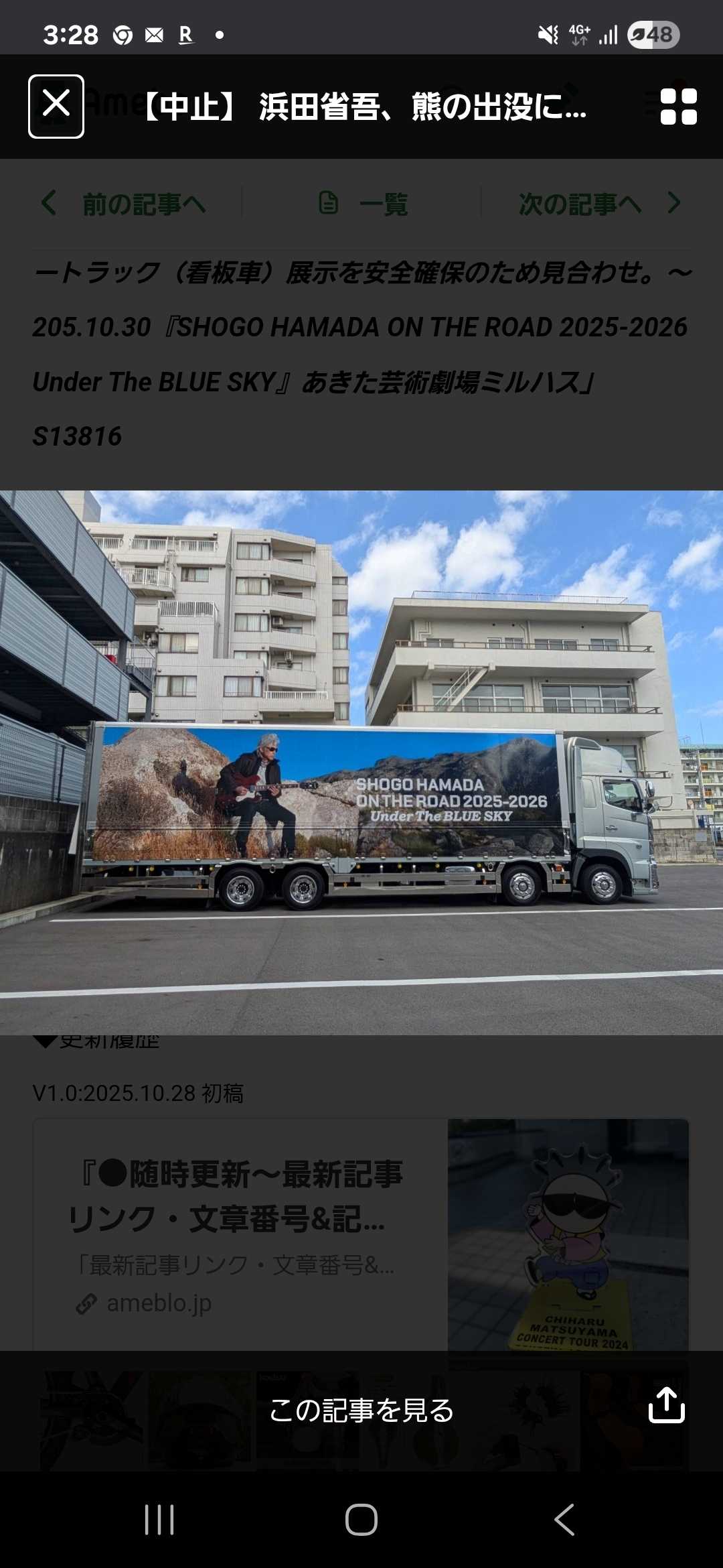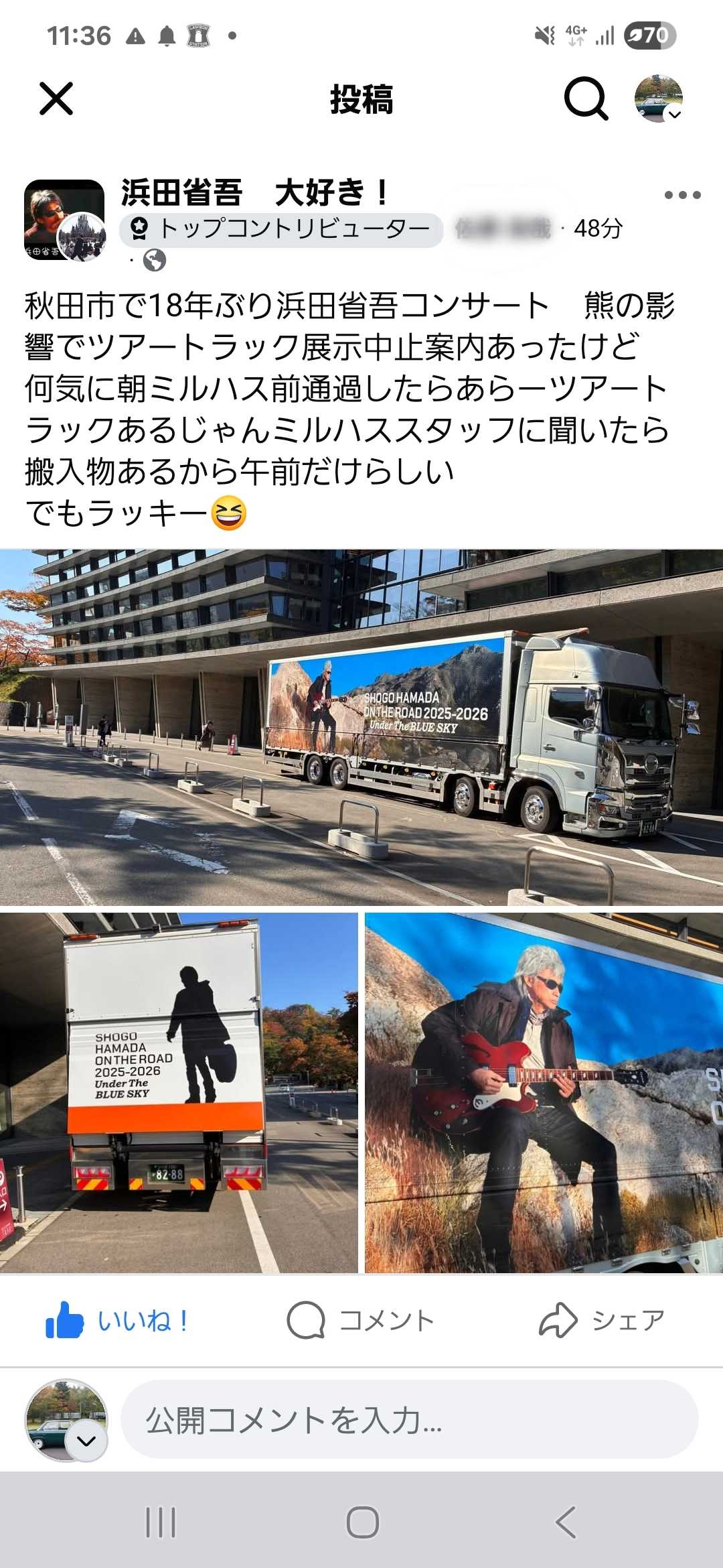 浜田省吾のコンサートです(笑)。ツアートラックがいっぱい。近くの千秋公園は、熊が出没したため封鎖中!!!さらに、この日の朝、近くの高校の敷地内に入ったのを目撃されたらしい…。ミルハスです。