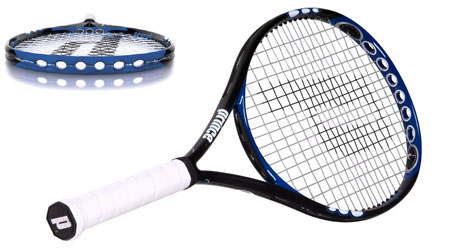 昨日のスクールではプリンスから新しく出たO3ハイブリッドハーネット(OS)を試打してきました。ああ…、「そんなふうにラケットを変えてばかりいるから上達せんのじゃ!」という声が聞こえてきそう。ハイブリッドハーネットは、6時と12時部分はOポート、そのほかの部分は通常のグロメットという変わった構造ですな。面積は110inch2、重量は265g。試打ラケのグリップはG2.ストリングスはプリンスのプレミアソフト?結果から言うと「かなりイイ!」です。265gと割りと軽めなので、どうかな~とも思ったけど、それ以上にラケット操作がしやすい。上体に飛んできたボールにも、今のラケットよりも全然早くラケットセットできる。レッスンが始まる前に高校生の男の子と軽くストロークしてみたけど、振ってみた感じは、とても振りぬきやすい。どちらかといえばトップヘビーっぽい。パワーアシストは多めだけど多すぎず楽チン。少なくとも距離のコントロールはしやすいと思う。強めのボールにも簡単に打ち負ける感じではないような。ただ、こちらから思い切り打っていったときには、振ったわりにはスピードが乗らないかなーという気もする。ボレーもすごくしやすい。特にボレーボレーでは軽さにだいぶ助けられたような気がする。ただ、強打マンの返球には多少てこずる感じもあり、かな。これは俺が下手なだけかもしれん、というか多分そうだ。サーブはスライスのキレがすごく良くてびっくりした。コントロールもしやすいし。前にせるじに借りて打ったV-CON20に似てるような気もするが記憶が定かじゃない。とにかく初中級者にも非常に使いやすいラケットでした。あー、コレ欲しくなっちゃったな。
