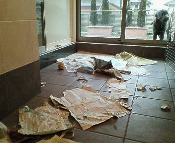 しょんぼりこのめちゃくちゃお留守番は何ですか」遊びたいモードの時に急なお留守番になってしまうと・・・よくあります粉雪新聞紙・・・今日はまだいい方かなぁ~ものすごい細か~い時もあります。きっと「プンプン顔」でビリビリしているんでしょうね。