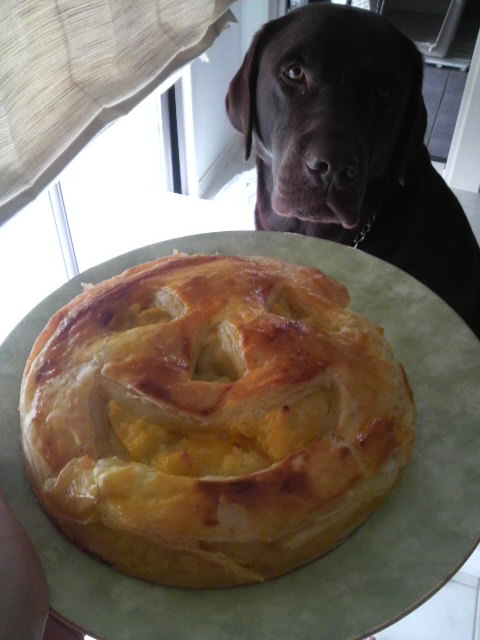 実は…さつま芋をたくさんいただいたのでスイートポテトパイ♪焼いている間マウイは机の上でお座りしてクンクン!悪い仔ちゃんです。