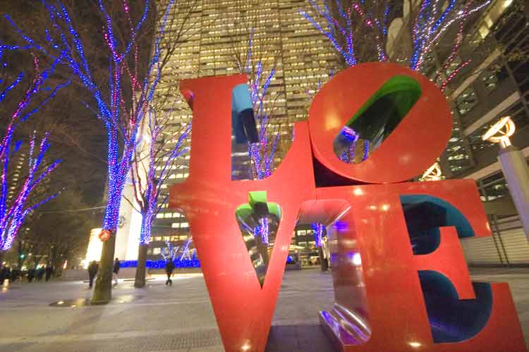 西新宿にあるアイランドタワーの広場にあるオブジェ。さすがに、夜ともなるとカップルはいません。お台場のレジャーランドにある観覧車。こちらは満員で、数少ないシースルーボックスは1時間以上の時間がかかっていました。次は、フジTVのイルミネーションのある広場。奥さんが犬のリードを持って旦那が後ろから撮影しながら階段を上ってくるところで、ちょっと変わった画像がほしかったのでシャッターを切ってしまいました。この日はスタートから露出優先シャッターだったので、ブレも想定内の範囲でした。