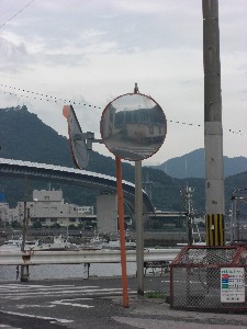 牛深、元下須の交差点。カーブミラーですが?一旦停止して見る『カーブミラー』ですが。 あっち向いて、ホイ・・・・・・ 左の学校跡のプールを見てます。もう少し、右を向いてると、取締り中の白黒パンダが見えるけどね ここは、小学校の通学路です。おまわりさん、早く直して道路標示、標識の管轄は・・・・・ どこ?天草地域振興局かな?まぁ・・・・・どこでも良いが・・・・・修理、修理