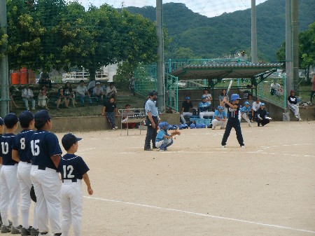 9月の第一日曜日。子ども会対抗、親子ソフトボール大会がありました。7回戦ですが、子どもが4回、残り3回をお父さん達、(あかぁさんでもOK)リードして来たら、守り抜く。 リードされて来たら、挽回し逆転を目指す。残り、3回では、9アウトしかできないから、プレッシャーが凄いよ。で、試合の15番と12番は親子ではありません。バッターも真剣です。がんばれ~・・・・・・この後、審判の右手があがりました。 残念ベンチの中では、後半戦に備えて、おとうさん達、緊張中かな?怪我の無いように、頑張って お昼から、白黒パンダ、発見県外のに、違反切符の販売中です。 一旦停止違反かな? スーパーのウラの所だと思う。で、ここはバス停です。邪魔、ジャマ・・・・と、病院の入り口付近です。 『そこの白黒パンダこそ。駐車違反だ。』と、村長は言った。 (暑いから、窓は閉めてます。) 『止まれ』を見たら、タイヤを止めましょう。停止線の手前で。学校も始まりました、気をつけてください。