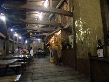 牛深にも台風12号の影響の風が吹き始めました。お昼は35度まで気温が上がり、『暑っかなぁ』の会話です。 『いつまでも、暑っなぁ』・・・・・・村の中は天国なぁ・・・・・・・・・村長、月末の支払いが地獄ですで。村のドアが バタン、バタン、バタンと叩く。・・・・ 風のせい・・・うるさくなりました。夜中に風が強くなると予測。 (烏賊釣りに行けないよ。)看板を結ぶ。すだれの撤去。屋上の遮光ネットはそのままでガマン。みなさん、自然災害に備えましょう。