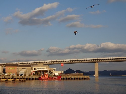 気温も上がり、ややぬっかた。 牛深の港では桟橋工事があってる。大掛かりの工事です。いつまでかな?新品になったら、報告します。 元下須からは 他所から来た人は。『ハイヤ大橋のクルクル橋と言います』ループ橋と言うのは牛深人だけ?