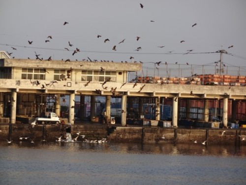 牛深、台場の漁協ですが。トンビ、ウミネコ、カモメ?が群がってます。排水から、魚の残飯が流れてくる! 小魚が寄って来る。それを空から狙ってます、一斉に、空から急降下して狙います。むかしの零戦が攻撃に似てました、 所で、この鳥たちのお宿(鳥の巣)は、何処だろう?牛深の港を飛んでるカラスは、舟津の山に帰って行くのを見たよ!トンビに、うみねこは? 野鳥の会に依頼します、 うそぴょん!
