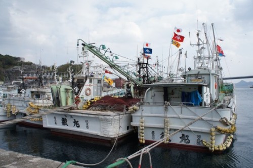 曇り空から、の光を待って撮影に 岡東の台場からです。港町では、お祝いの旗が!牛深の港も大漁を願って!毎年の船団です!左から二隻目、日の丸が切れてます、加世浦地区の船団です。牛深の活性化は、大漁でお魚がいっぱいに! その他の写真は?牛深の小型巻き網船団です。 白、赤で撮影しました。 加世浦の長手からです。
