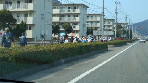 久玉の小学校のお別れ遠足でしょうね会場は、牛深公園かな?団体行動です高学年と低学年が手を繋いでます昔の遠足は、権現山か遠見山、または大の浦小学校まえの海岸まででした