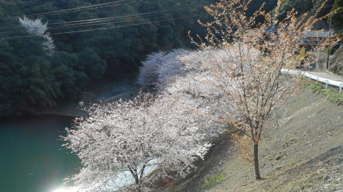 本渡、亀川ダムのサクラですトンネル手前の坂道です。 ダムからまで行きました。夕方でした、お昼なら太陽の光で綺麗だと思う!牛深のは ?種類が判りません。 港へ 鯉のぼりが泳いでました牛深の街中、電線があり、元気に泳げませんね!