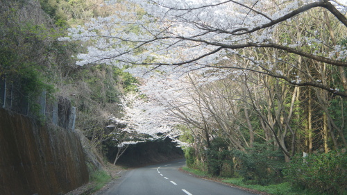 案山子村から、本町の農免道路のサクラのトンネルを走った途中まで走れるが、通行止めでUターンですサクラの花見ドライブが多いです、満開ですよ本渡、本町から苓北までの農道でした。 明日は、亀川ダムのサクラ情報を