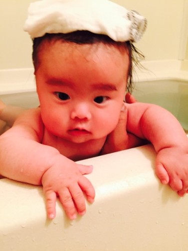 いい湯だな生誕4か月になりましたが。入浴シーンを良~く、温まって !ふぅー、良い湯加減だよ。 あぁ、のぼせたよ。さぁ、お風呂から上がって、キュートと 一杯飲みたいね (でも、あと20年後だね。)まぁ、おっぱいでも、飲むか