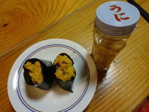 4月解禁の雲丹を頂きました生うにです軍艦巻きにしたよカシャ! すぐにお腹の中に。パク!パク!奥様にも、プレゼント!雲丹とあおり烏賊の軍艦巻きです牛深の新鮮な魚介類で・・・・・・ 乾杯 さて、来週は『牛深ハイヤ祭り』です。お天気を願って・・・・・・・ 乾杯
