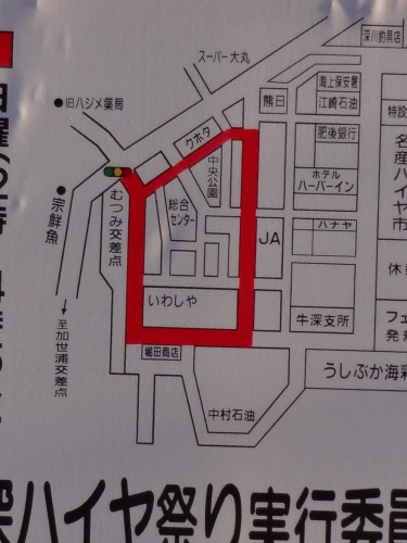 18日19日の祭りの時、交通規制があります赤い線が規制ですが、そこの道を踊ります。反時計回ります休憩ゾーンは、中央公園付近、1ヵ所だけです。夕方、17時40分頃、草刈機の音が・・・・・?牛深支所の職員さん達が清掃作業をされてました仕事を終わってからの、ボランティア作業です。 感謝です!