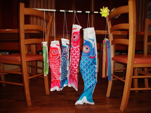 牛深、朝から、雨、風強く。10時ころ晴れたお昼ごろ、雨と予想、やっぱり、14時、風が吹く、春一番? (今年、吹いて無いね)村の鯉のぼり、回ってます絡んでしまいました。 街中では、飾り付けです。あと、3日でハイヤ祭りです。今年は、お天気、OKです。遊びに来てください。