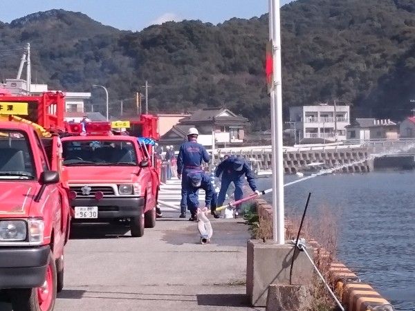春の火災予防週間です牛深、久玉町自主防災訓練を開催中消防団の放水訓練放水先を持つのでは無く、地面に固定して放水します消防署の給水車から、防火水槽へ水を補給中です (仮設の防火水槽です)消防署の敷地では、 保育園児がはしご車と体験会ですミニ消防車の試乗会です春の日差しもと、老人会(敬老会?)も 消火器の使い方講習会など開催されてました