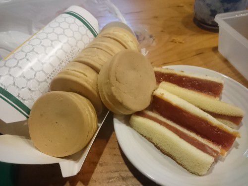 お客様から 頂きましたそれも 2種類 左は、蜂楽饅頭です 本渡からです牛深にも、あそか饅頭と よかろう饅頭がありましたね (1個 10円だったと思いますが?)右側は 牛深の合わせ羊かんデス でも? 端っこの切れ端の部分です 甘みが集まってる所ですよ茂串のS製菓店の商品ですカステラも、端っこが美味しいと思いますけど!カロリー、たっぷりですね !