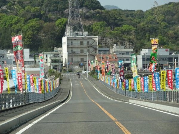 牛深ハイヤ祭り 週末ですよハイヤ大橋では 祭りののぼり旗14日(金) 14時より通行止めにて牛深高校、全校生徒による、ハイヤ踊りが披露されます撮影場所のNo1は、NTTの鉄塔かな?KKTのお天気カメラがあります生放送を期待したいですね!