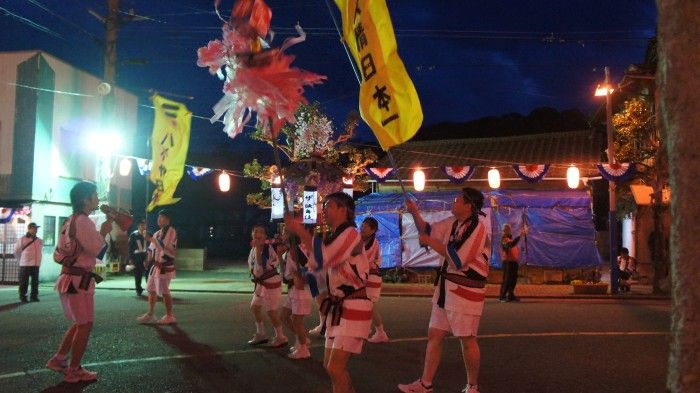 牛深ハイヤ祭り、19時、総踊りが始まりましたハイヤ大賞候補の福本病院です神輿が来ましたピコ太郎が? 何人居るの?名人たちが来ました奥の方で孫たちも観戦中この後は、ザーザー降りに 集中豪雨に 開始から、55分で打ち切りになりました