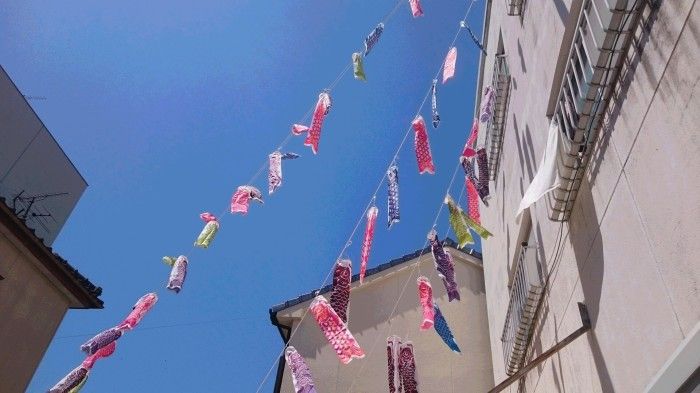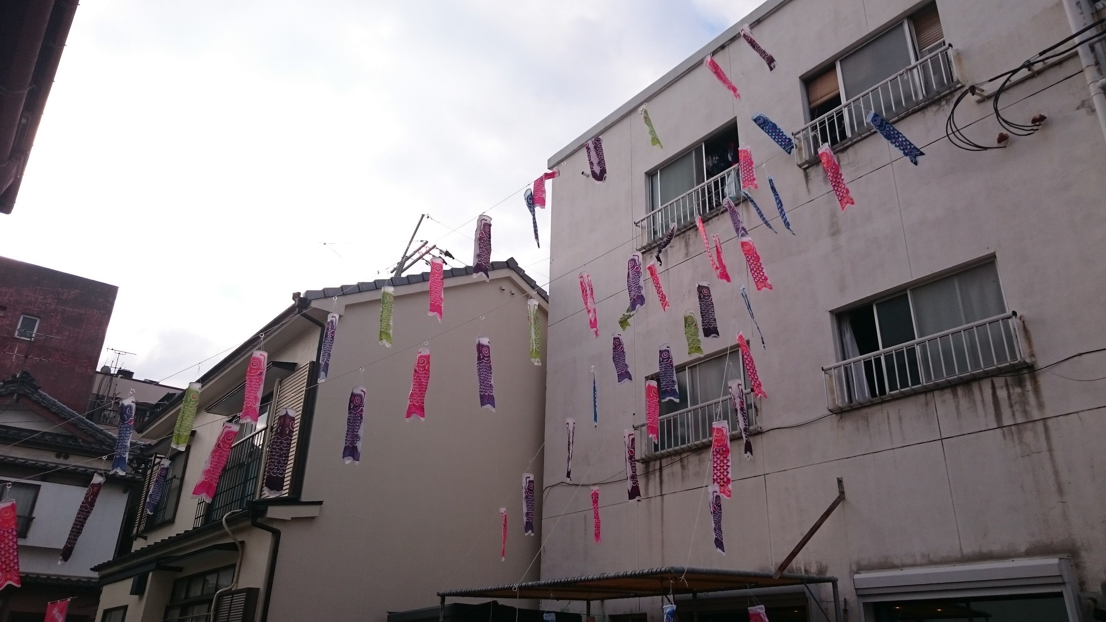 久玉町明石の鯉のぼりですお昼、元気に泳いでました