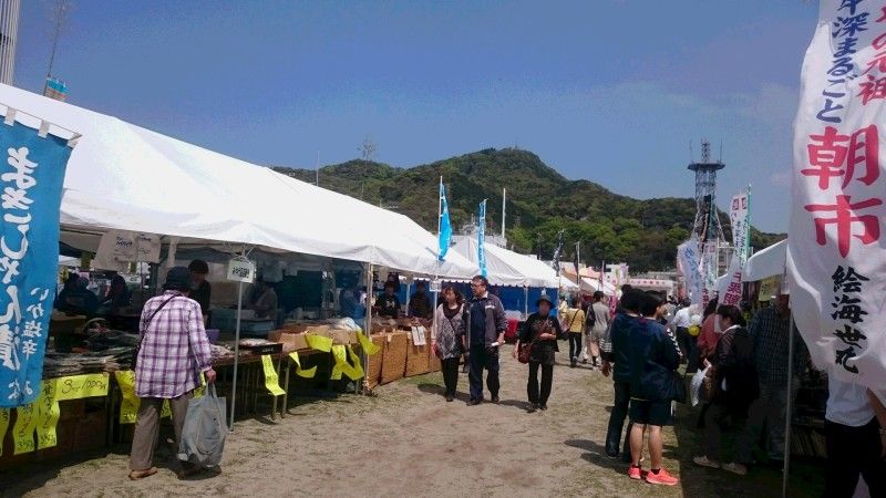 朝から、気温ぐんぐん上がりますハイヤうまかもん市場(牛深名産ハイヤ市)朝1030分頃ですお天気、最高