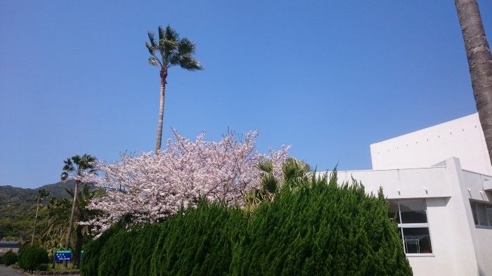 牛深の気温も上がってるが中々、桜の情報がないR266の内の原の直線も まだ 亀川ダムの桜も、まだ!牛深の空は 青空です飛行機雲もあったが 飛んで行って、消えた海彩館、支所付近で咲いてる情報あり。チラホラと咲いてました