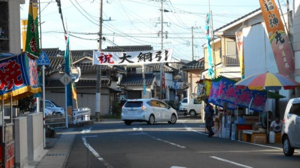 茂串の十五夜の綱引き、準備OKでした16時50分現在露天の準備もOKです20時の路線バスが通過後、祭典があり、その後。どんだとしんぎゃに別れて、綱引きを!むかしは、牛深各地でも開催されてましたが、 茂串の綱引きは 歴史が古いそうです 約300年ぐらい !