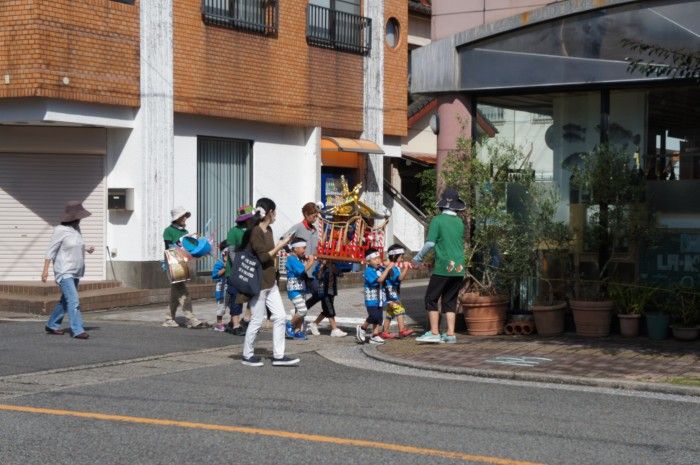 ワッショイ、ピッピ。ドンドン! ワッショイ!街中に、可愛い声と、太鼓、笛の音が響いた。 ?子ども神輿が来たよ八幡様の秋祭りは 14、15日だけど ?牛深保育所の園児達でした先生、保護者も参加です 園児少ないですね園児の授業の一環かな?牛深の祭り、14日 15日 久玉の祭り、21日 22日 魚貫の祭り、28日 29日ですよ!