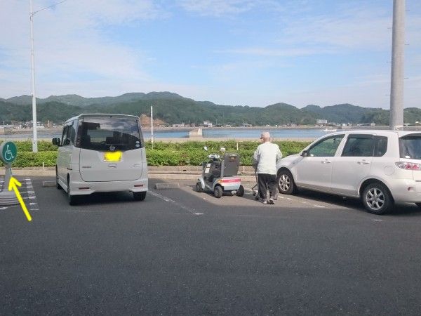 牛深のホームセンターにて障害者スペースに駐車する人多いよねぇ~!でも、これは 許す おじさん、歩道をゆっくり走ってね 信号守ってね昔のつもりで、暴走はやめてね 村長さんは、絶対に駐車しないよ!でも、膝、腰、痛めたら、 止めるかも!