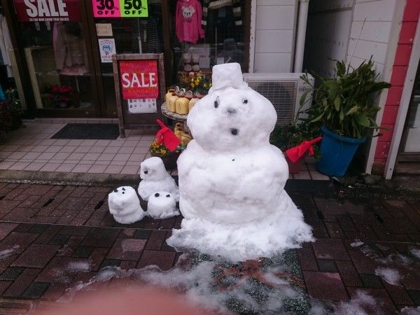 朝から、気温が低く、雪が残ってましたお昼、街中、徘徊 屋根から、解けた雪が落ちてくる (固まり、氷状態)14時04分 4度まで上がったけど。寒い 昨日の、雪ダルマがあった。可愛い、親子ダルマかな?岡東のダルマ、解けたのかな?『恵比寿様』でした。固めて、固めて、削りました魚を持たせて下さい、みりん干しでも良いから!