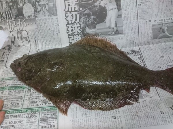 牛深の須口港の刺し網で取れた魚を頂きました左向いてますから、平目ヒラメで正解かな?ギョロっとした目で睨まれました新聞紙の上で 大きさは? 約53cmあります刺身でOKですが えんがわが最高ですね 感謝!最高気温15.2度です 春近し !元下須島から ちょぅと細工しました。うふふ