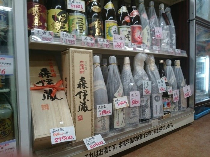 久玉のスーパーに陳列してありました寒い日は、イモの島美人のお湯割りですが高級な焼酎は飲めないですね森伊蔵 20.500円、桐箱入り 21.500円 ’税別のお値段) 伊佐美も 村尾もあります 一升瓶!半分ぐらいならと 森伊蔵さん、村尾さん、佐藤さんとか、名前? 魔王さんは ? ?う~、島美人でいいかな?暖かくなったら、島乙女のロックが Good いや、ビールですね