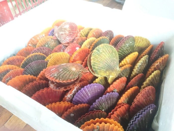 送別会の季節、自分達で育ててるヒヨキ貝を出して下さいと!浅海湾で養殖されてそうです『試食にどうぞ』と頂きましたプリプリしてます。 実も厚いです。檸檬を欠けてもOKです