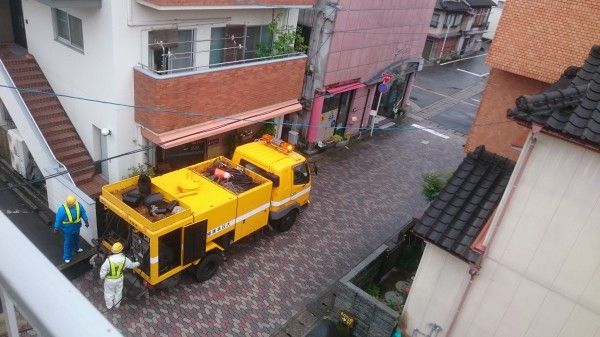 牛深のどぶ掃除!街中は、業者さんが行います側溝を一枚開けて、放水! 下流でバキュームです掃除代金を支払いますが?牛深の街中に、空き家、空き店舗がありますがどうするの?